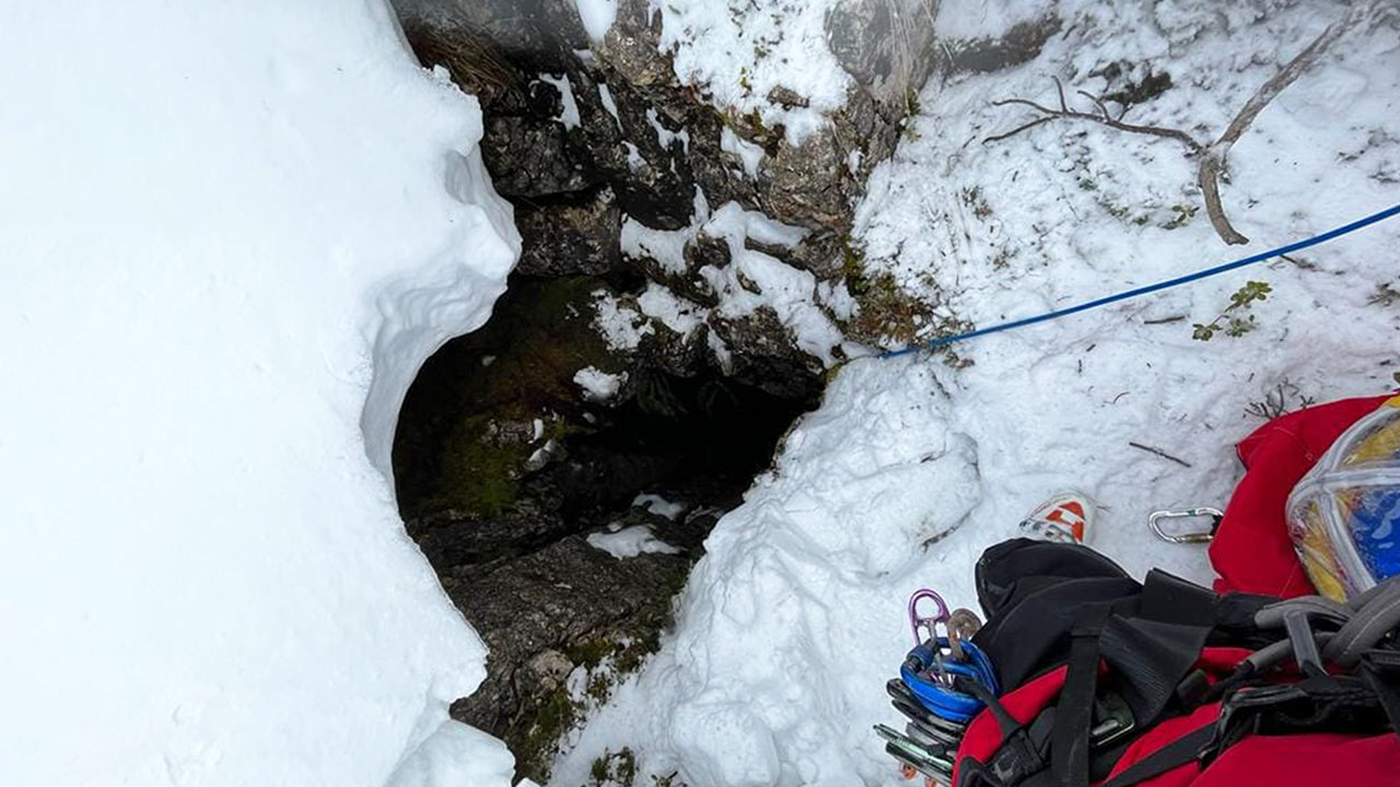 Skitourengeher stürzt in 8 Meter tiefes Loch. Der 55-Jährige war mit Freunden auf der Stumpfmauer im Grenzgebiet zwischen Ober- und Niederösterreich unterwegs. Kurz vor dem Gipfel ist er in eine schneebedeckte Doline gefallen.