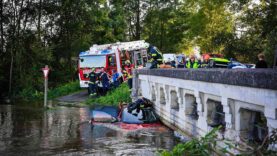 Auto fliegt 20 Meter über Böschung