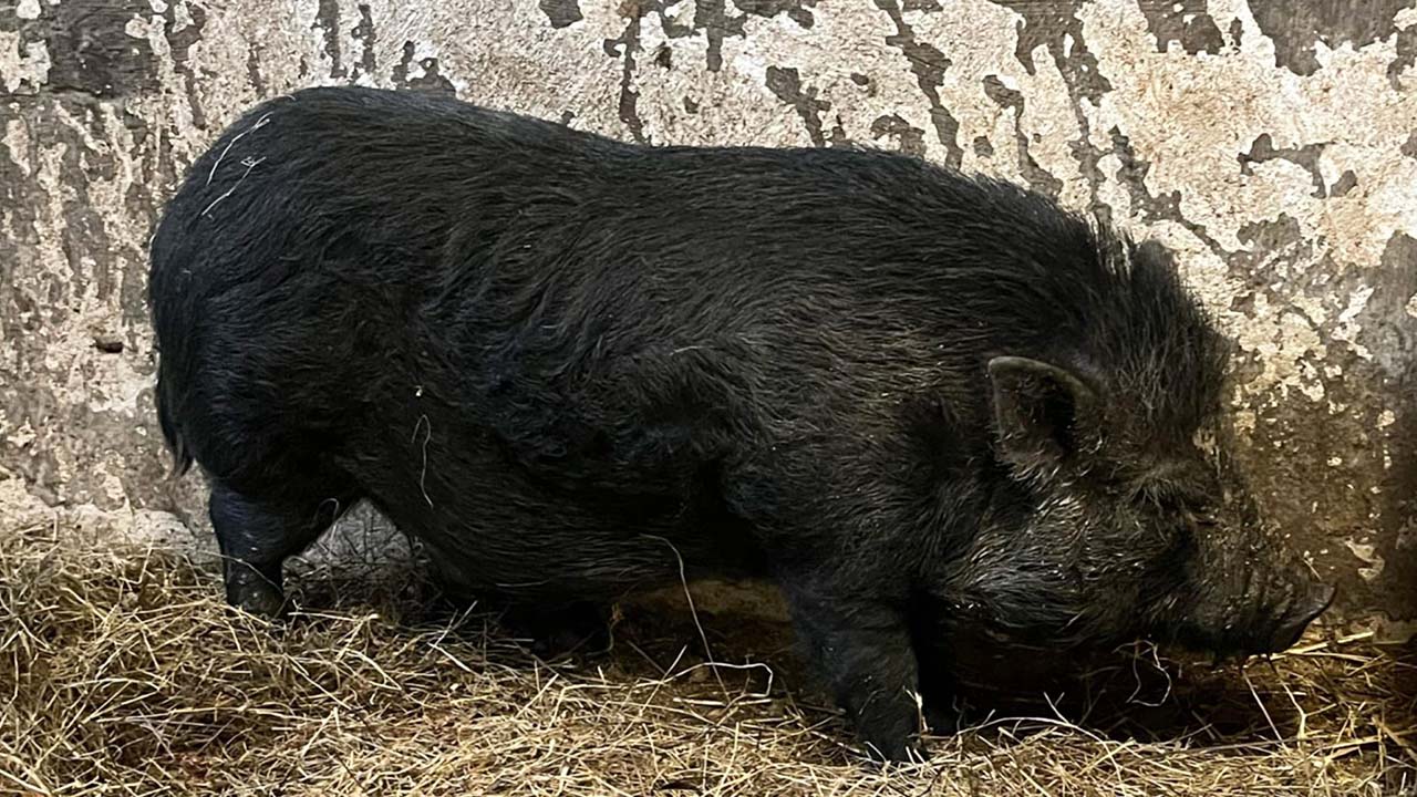 Hängebauchschwein auf Autobahn. Donnerstagnachmittag hat sich das Tier auf die A8 bei Krenglbach verirrt. Die Autobahnpolizei und die Tierhilfe Gusental haben den Vierbeiner gemeinsam mit zwei Passanten gesichert.