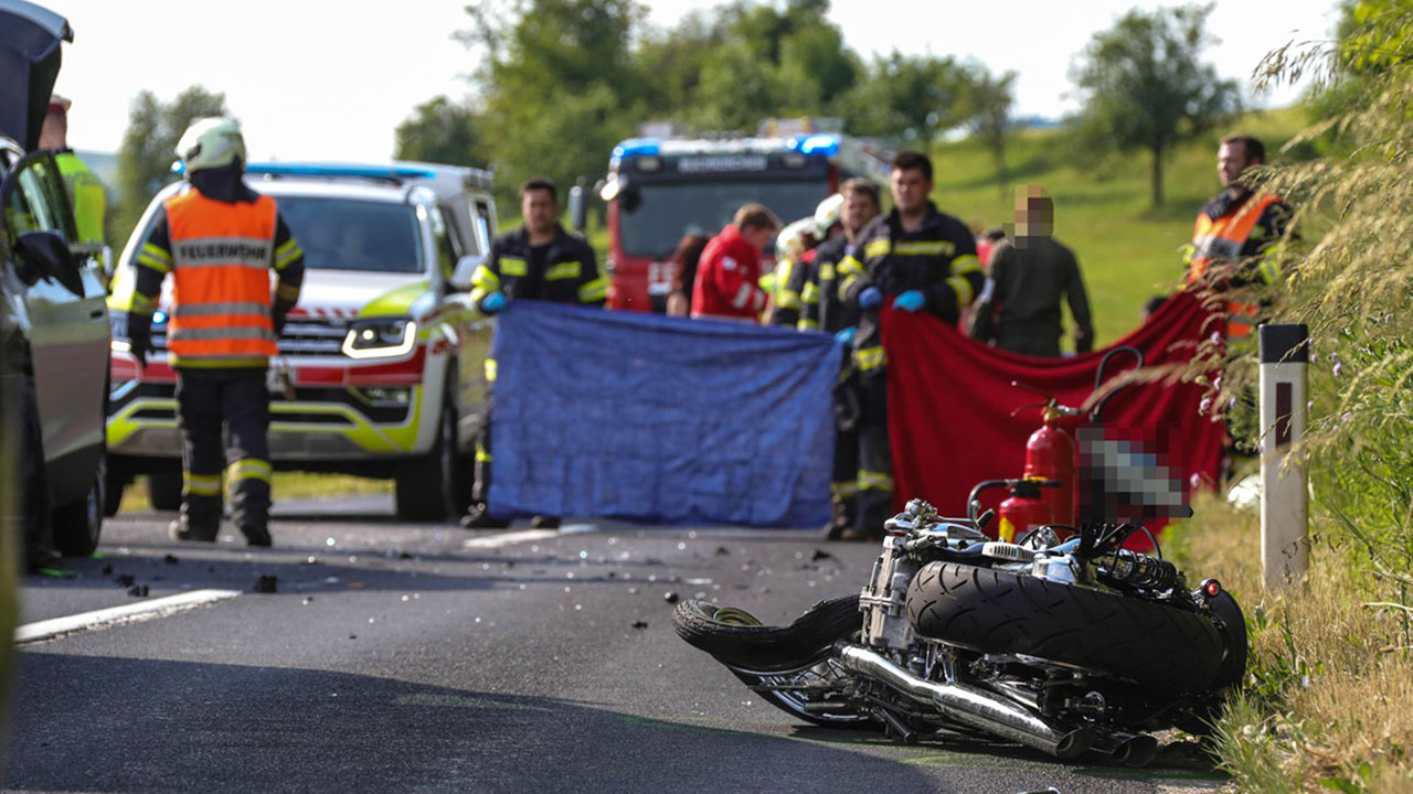 Tödlicher Crash bei Buchkirchen. Ein 54-jähriger Biker ist beim Überholen in den Gegenverkehr gekracht. Für den Mann kam jede Hilfe zu spät. Er wurde vom Motorrad geschleudert und ist noch an der Unfallstelle gestorben.