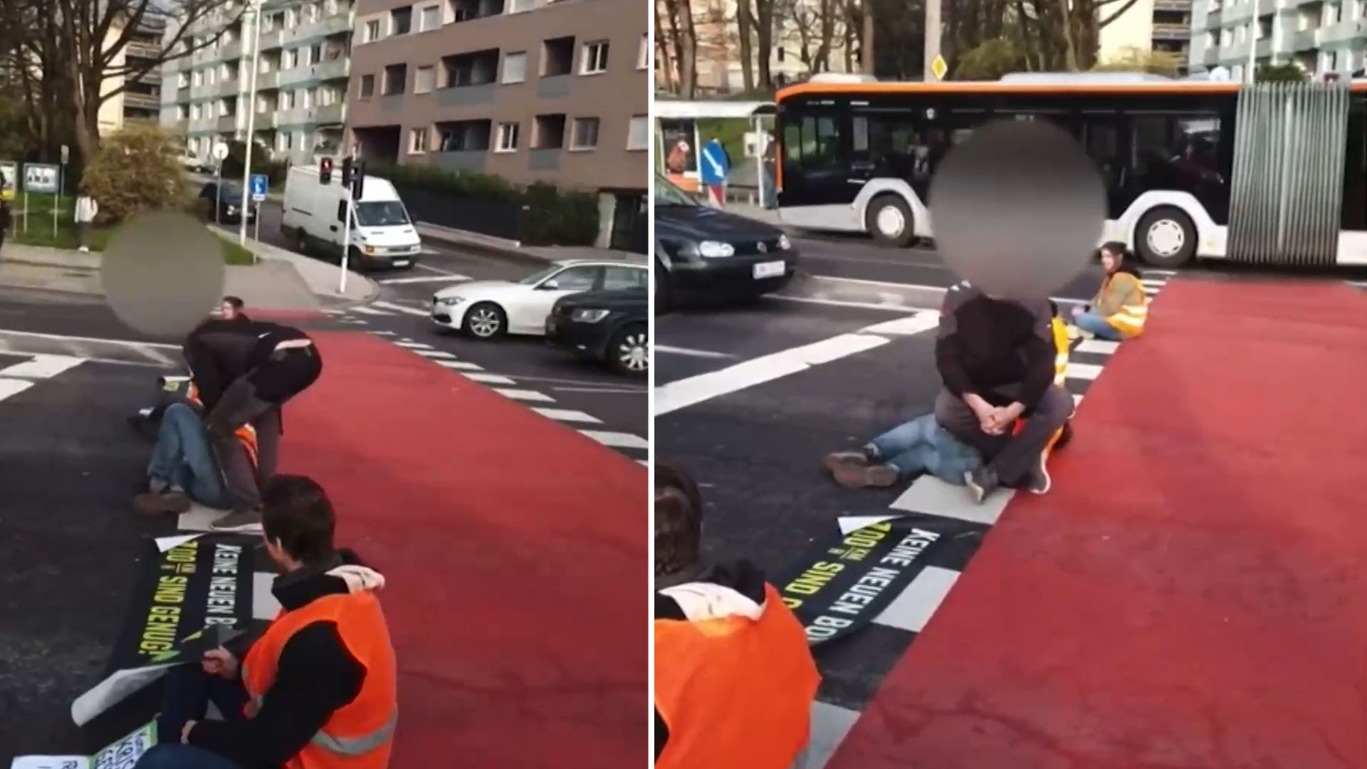 PKW-Lenker setzt sich auf Klimakleber