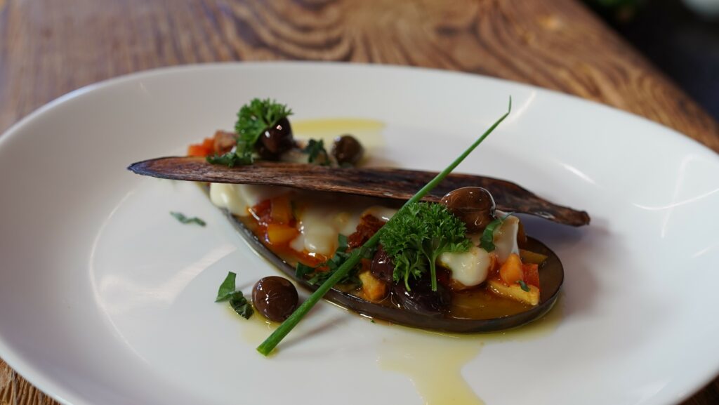 Ratatouille auf gegrillten Melanzani anrichten. Mit Taleggio belegen. Im Ofen bei 195° 5 min backen.