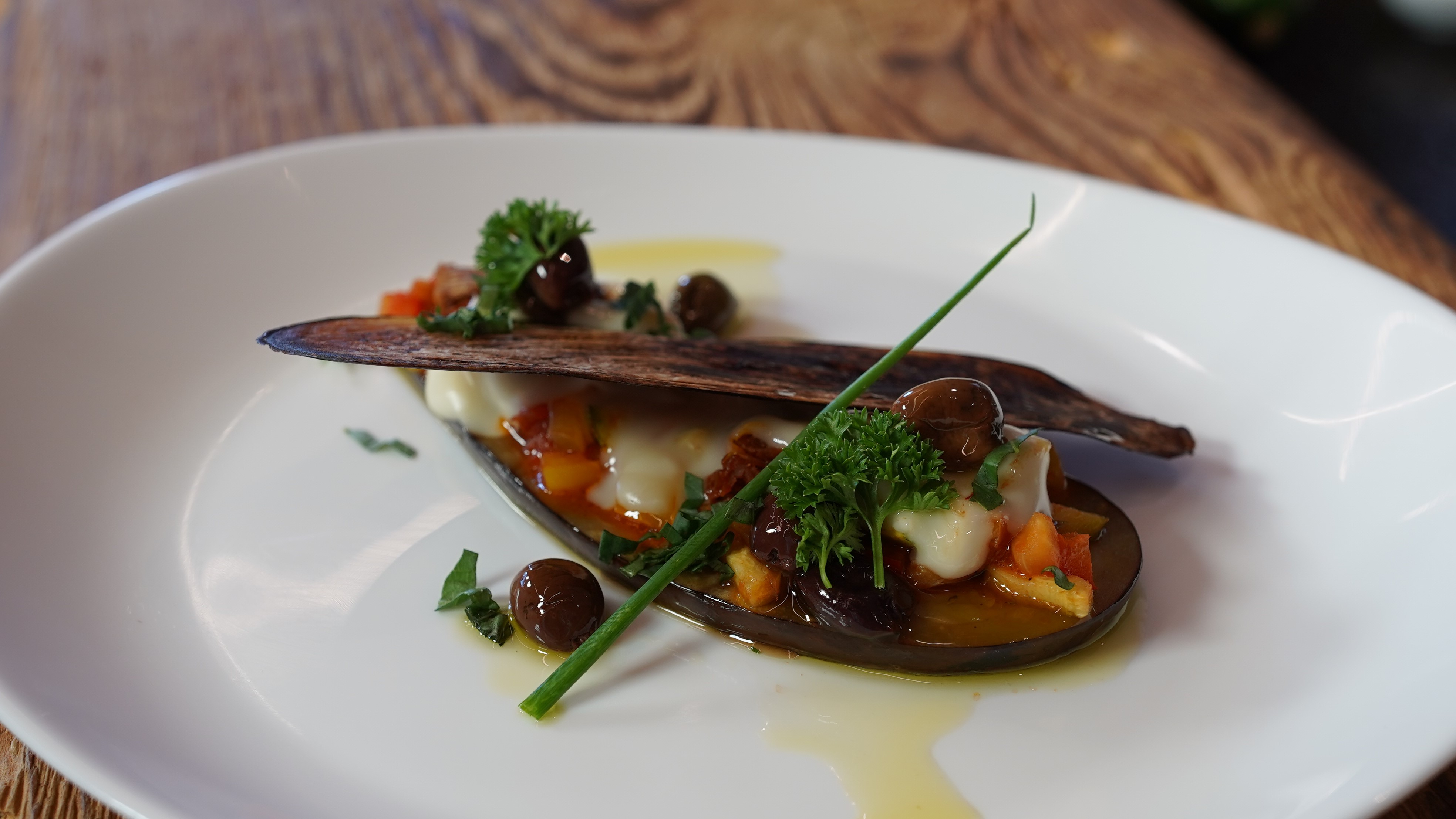 Mit Kräuter und Oliven garnieren. Anrichten.